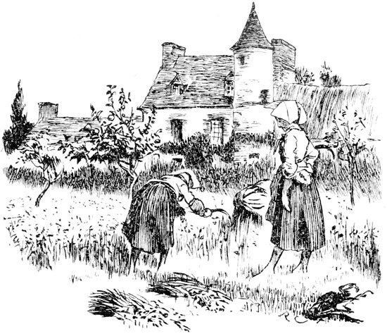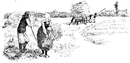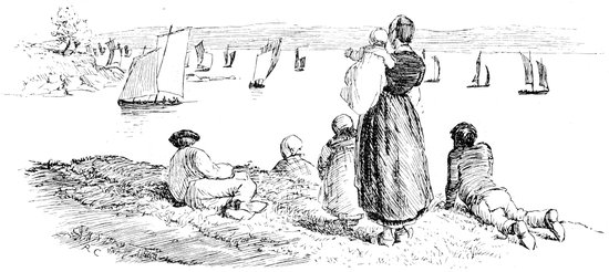 But our lasting impressions of Brittany are of a people and of a country, interesting for their isolation from the rest of Europe: of a people who are, as has been well said, “dwelling in an heroic past that possibly never existed, consoling the failures of their destiny by beautiful fancies, and throwing a grace over their hard, unhopeful lives with romantic dreams and traditions”; of a people who invest every road and fountain with a holy name—for wherever two roads meet, there is a cross or a sign, and wherever three streams meet, they are called La Trinité;—of a land that stands alone in Western Europe, its rocks unmoved by the shocks of tempest from without, and its manners unpolished by advancing civilisation from within; of a land where men look to the sea as well as to the earth for their 200harvest, where the plough comes down to the water’s edge and the nets of the fishermen are dried upon fig-trees, where laden orchards drop their fruit over weather-worn walls on to the sands, and fish, leaping from the sea, alight sometimes in a field of corn; of a land brightened for a few weeks in summer with the flower of buckwheat, and coloured with the coral of its stems, where the wind sweeps over waves of grass and grain, and scatters the harvest over the sea.