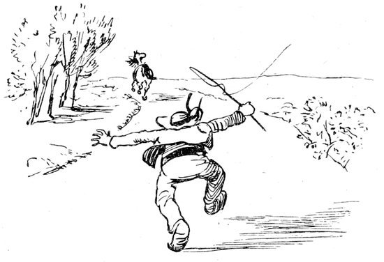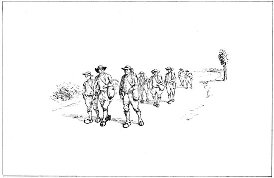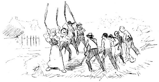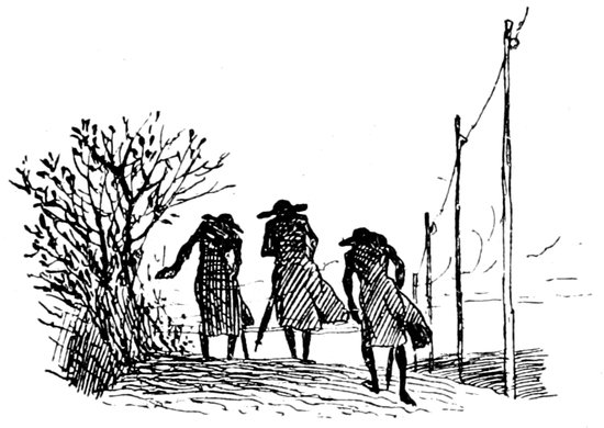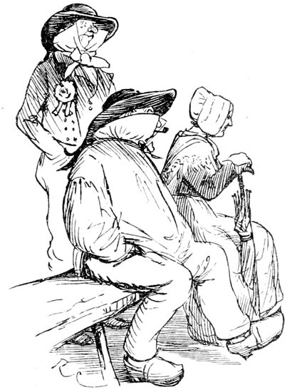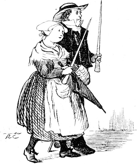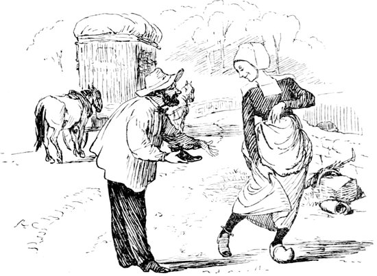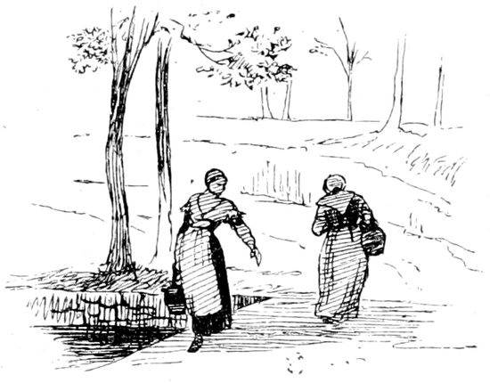There is a museum of Celtic antiquities at Vannes, containing a 192collection of ornaments, flints, &c., found in the cromlechs at Carnac and the neighbourhood, which is well worth visiting; and there are various shows and amusements for the people on the Place and in the public gardens; but the fact remains that the majority of the working inhabitants sidle off on Sunday morning as we see them in the sketch, gravitating one by one towards every house outside of which hangs a bunch of dried mistletoe or broom.