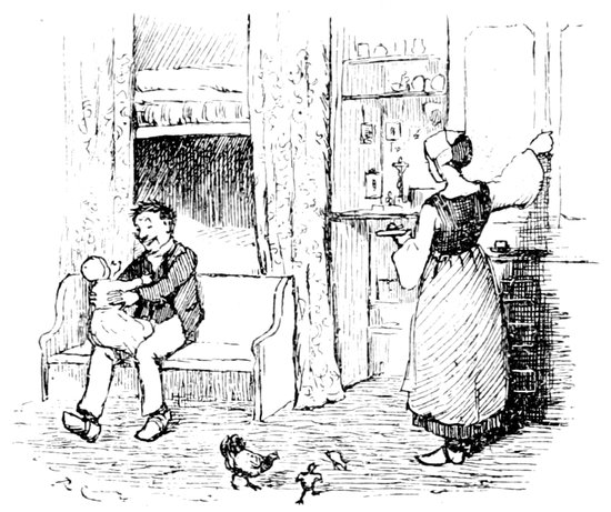 166So bright and charming is our little maid this morning that it is difficult to believe that she came out of a carved wooden bedstead let into the wall of the kitchen (a bed of two stories, holding four!), that she does most of the work of the hotel, and helps in the stable. It is enough for us to record that travellers are well cared for; that Englishmen come here for the fishing, and sometimes stay for weeks, living at the rate of four or five francs a day, including everything.