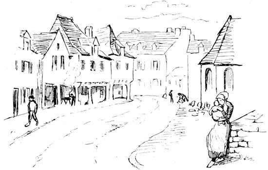 In spite of the grandeur of its situation, the solidity of its buildings, and the evident industry of the inhabitants, there is a dreary, ruinous look about the Place of Le Faouet even on a summer’s day. What must it be in winter winds? On the brightest and driest day of the year many of the houses are dark and unhealthy-looking, built close together, with narrow lanes of mud and filth between them. What must they be when the rains begin?