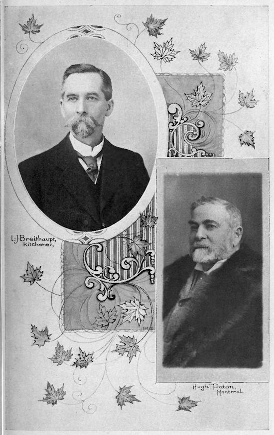Detwiler, Noah Bechtel (Kitchener, Ont.), was born June 3, 1858, at Roseville, Waterloo Township and County, Ontario, the son of the late Rev. Enoch R. Detwiler, preacher and farmer of that place, and Abigail Bechtel. He received his education in the public schools and then took a course in a Toronto Business College. He married, December 14, 1880, Mary, the daughter of the late Jacob Y. Shantz, manufacturer in Berlin (now Kitchener), and a pioneer in the development of the Canadian North-West in the eighties and early nineties, and has one son and three daughters—Elden, Doctor of Osteopathy, London, Ont.; Lenora and Ethel at home, and Elizabeth, the wife of Prof. Herner, of Manitoba Agricultural College, residing in Winnipeg. Mr. Detwiler is a Protestant, worshipping with the United Brethren in Kitchener. In politics he is a real Independent, favoring no party, but always for to support the right man and the right principles if fortunate enough to have the opportunity of doing so. He was an early advocate of public ownership and his brother, D. B. Detwiler, of Kitchener, is the pioneer Hydro promoter in Canada, and is President of the Algoma Power Co., Ltd., and Chairman of the Great Waterways Union of Canada, and the proud father of two sons, with the Canadian Expeditionary Force in France. Mr. Noah B. Detwiler is actively engaged as President and Treasurer of the Hydro City Shoe Manufacturers, Limited, with office and works at No. 117 Weber Street, and as Secretary-Treasurer of the Algoma Power Co., with head office in Kitchener and plant at Michipicoten, Ont. When not engaged in business, Mr. Detwiler’s pursuits lie very largely along the line of social and religious work. He has been a director of the Y.M.C.A. for many years, also for a long time Sunday School Superintendent. Is local Secretary of the Social Service Council of Canada, and has always been an advocate of temperance. His reputation for good judgment and reliability is shown by his being executor or trustee for several estates, and while Mr. Detwiler is mild and affable in manner his clear cut style shows that confidence in him will not be misplaced. The family reside at No. 105 Queen Street North, where at this point the environment is quite in harmony with its name.