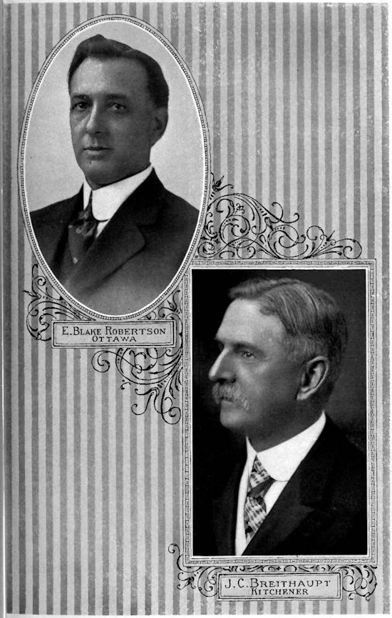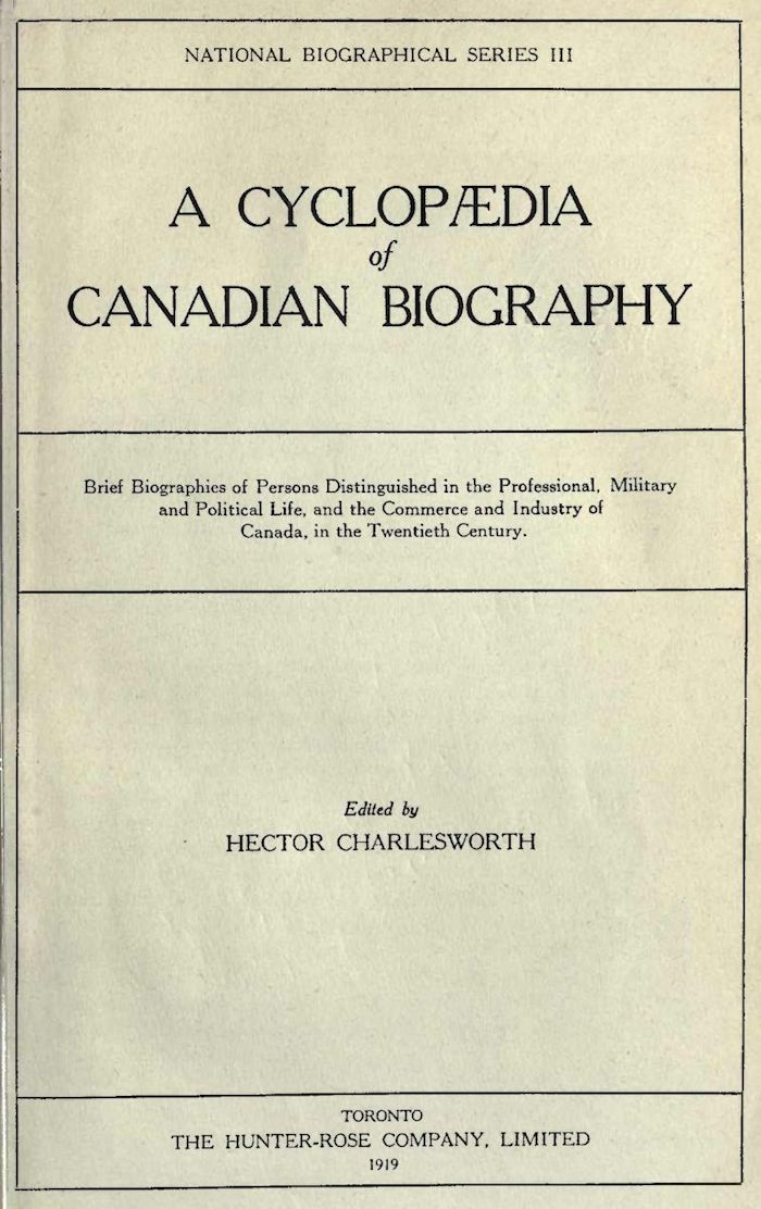 The vast majority of those whose careers were recorded in 1886 have passed away; and the same is true of those who figured in the second volume of the series. Consequently, the earlier issues of “Representative Canadians” grow every day more precious, for, in many cases, they contain the sole records of men who initiated great enterprises or furthered important movements which have left a lasting mark on the history of Canada. We cannot but think that the reader who, thirty or forty years hence, may chance to scan the pages of the present volume will gather a very vivid picture of Canada as it was in one of the crucial periods of the world’s affairs—a picture in which the characters of those Canadians who lived and “carried on” through the years of the greatest war in all history may be discerned in the records of their lives. There is hardly a page in this book into which the war does not enter directly or indirectly in some form or other, by way of allusions to services rendered, bereavements endured, or honours gained on the field of battle. In that sense the 1919 volume must remain unique, and a mine of useful information for students in future generations.