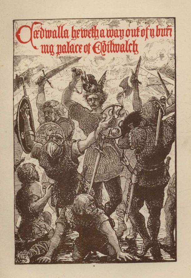 Cædwalla heweth a way out of the burning Palace of Edilwalch