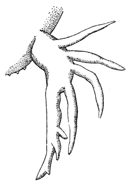 The Rotifers are so small that they are built up of very few "cells" or nucleated units of protoplasm. Many of them are of smaller size than some of the big infusorian animalcules, which consist of a single cell. The Rotifers are probably a dwindled pygmy race descended from ancestors of ten or a hundred times their linear measurement. [Pg 172] It is an important fact that in the possession of a toothed gizzard, in the hard body-case or cuirass of some kinds, and in Pedalion's rapidly-moving legs or paddles, fringed with plumose hairs and moved by that peculiar variety of muscular tissue which is called "striped muscular tissue," the wheel animalcules give evidence of relationship to the Crustacea—that is to say, it appears to be probable that they were derived from the common ancestor of marine worms and Crustacea before those two lines of descent had diverged.