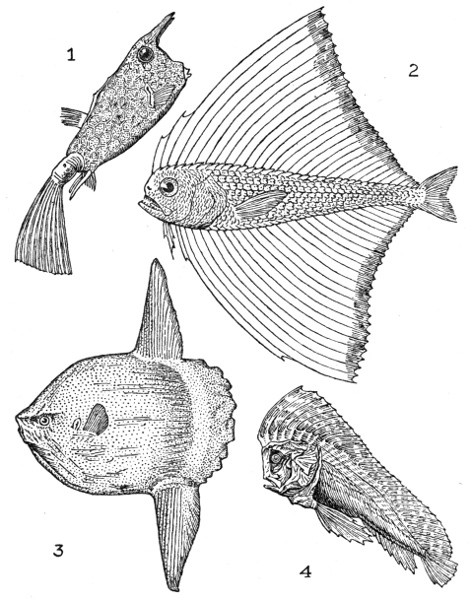 THIS plate shows the restoration of the extinct lizard, Dimetrodon gigas (Cope), lately made by Mr. Charles W. Gilmore of the United States National Museum, by whose kind permission it is here reproduced from the Proceedings of the U.S. National Museum, vol. 56, 1919. It is based upon the study of a very fine skeleton and some hundred bones of allied species, collected by Mr. Sternberg from "the Permian formation" exposed in the vicinity of Seymour, Texas, U.S.A. It is selected for illustration here because its most striking feature—the high dorsal fin-like crest along the middle of the back formed by the elongation of the neural spines of the vertebræ—is a puzzle to the conscientious Darwinian. Professor Case says of it: "The elongate spines were useless, so far as I can imagine, and I have been puzzling over them for several years. It is impossible to conceive of them as useful either for defence or concealment, or in any other way than as a great burden to the creatures (terrestrial non-aquatic animals) that bore them. They must have been a nuisance in getting through the vegetation, and a great drain upon the creature's vitality, both to develop them and keep them in repair." The reader is referred to pp. 127, 128, where a brief discussion of such [Pg xii] exuberant growths will be found. The excessive growth of the median fins in the fish Pteraclis allied to the Dolphin which displays changing floods of surface colour as it dies—and in the Australian Blenny called Patæcus—both figured on p. 130—should be compared with that of the strange crest of the grotesque Dimetrodon.