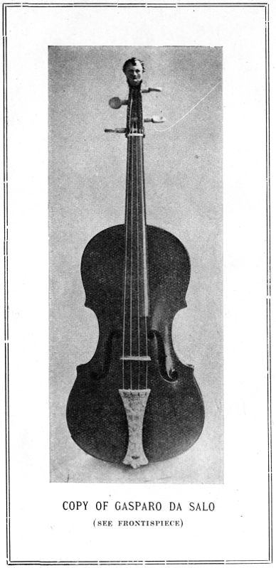 A Copy of the Gasparo da Salo Violin used by Ole Bull, the Famous Scandinavian Violinist, made by Mr. Gillingham, of Chiswick. (The front view of this violin will be found on the cover.)