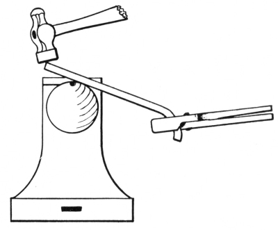 5. The Hammers.—Of the multitude of tools used by mechanics, the hammer is undoubtedly the most important one. There was a time when man had only his hands to work with, and from them he must have received his ideas for tools. Three prominent ones which are used extensively at present were most probably imitations of the human hand. From the act of grasping, man could easily have originated the vise or tongs for holding materials that he could not hold with the hand. Scratching with the finger nails undoubtedly impressed him with the need8 of something that would be effective on hard substances, and so he devised such tools as picks, chisels, and numerous other cutting instruments.