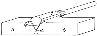11. The flat-jawed tongs are shown at A, Fig. 8. They are made in various sizes to hold different thicknesses of material. Tongs of this kind hold the work more securely if there is a groove lengthwise on the inside of the jaw; the full length of the jaw always should grip the iron.