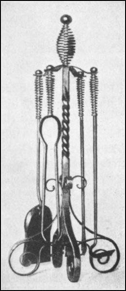 Chapter VII. Art Smithing and Scroll Work.—141. Art Smithing; 142. Scroll Fastenings; 143. Scroll Former; 144. Bending or Twisting Fork; 145. Bending or Twisting Wrench; 146. Clip Former; 147. Clip Holder; 148. Clip Tightener or Clincher; 149. Jardinière Stand or Taboret; 150. Umbrella Stand; 151. Reading Lamp; 152. Andirons and Bar; 153. Fire Set; 154. Fire Set Separated |