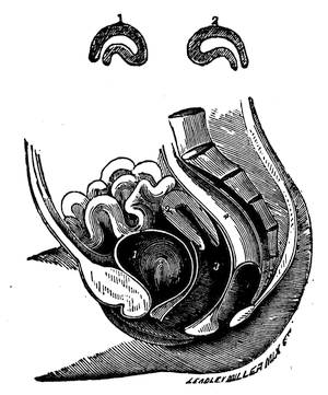 At the seventh month, the skin is of a rosy color, cellular substance becomes developed; the eyelids are covered; the bile is bitter; every part of the fœtus is enlarged, and so far developed that if born at this time it will be able to breathe, cry and nurse, but very difficult to raise, or bring up, requiring, as it does, a great amount of care, and constant attention. Lacking animal heat, it must be imparted to it by being kept7 wrapt in a soft, flannel blanket, and in the lap of the nurse, or lay close to its mother, as its own power of generating heat is very feeble, therefore that heat necessary to its existence must be supplied to it. It is very seldom they are strong enough, bodily or constitutionally, to endure washing or dressing. Natural, or animal heat, is far preferable to fire heat. The length of the body fourteen inches, and weight about three pounds.