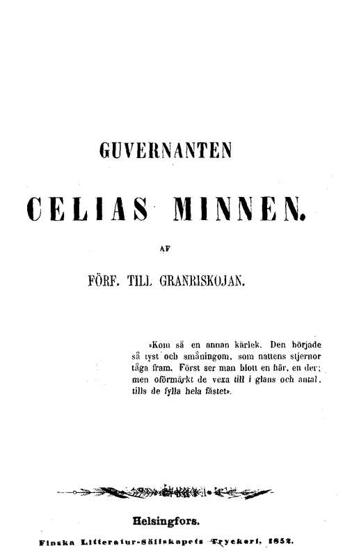 Finska Litteratur-Sällskapets Tryckeri, 1852.