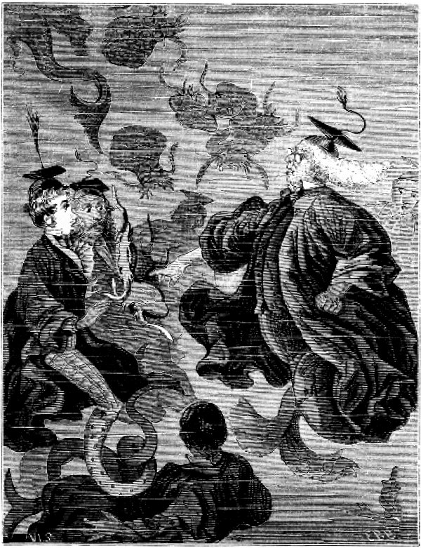 “I assure you, sir,” said Cymodoce, gravely, “that you are under a serious mistake. That figure is a mere painted figure-head, quite incapable of a rational thought or instructive conversation.”
