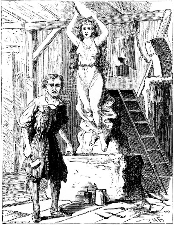 “And a pretty creature she is,” said Job, suspending his paint-brush full of the yellow-brown pigment with which he was tinging the rippled hair of the wooden lady, which was crowned with a garland of flowers carved with no mean skill.