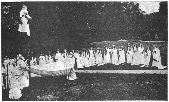 Indeed, it is at these fairs that hundreds of boys and girls meet for the first time. A young man comes in contact with a [3]young girl, he gives her some “fairings” or offers her a glass of something to drink, and accompanies her home in the evening. Sometimes when it happens that there should be a prettier and more attractive maiden than the rest present at the fair, occasionally a scuffle or perhaps a fight takes place, between several young men in trying to secure her society, and on such occasions, of course, the best young man in her sight is to have the privilege of her company.
