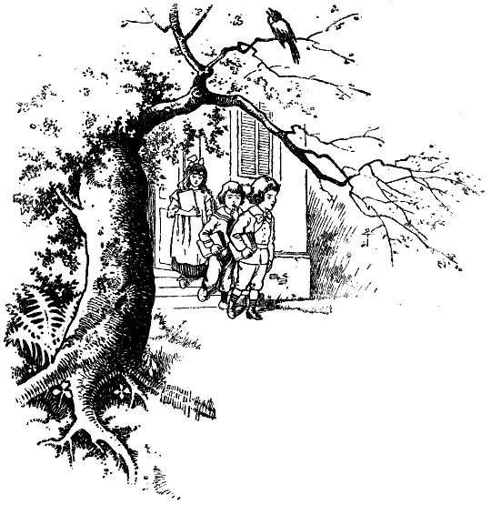 Seht, jedes hält in der Hand ein Buch, aber kein Märchenbuch, keine Reiseabenteuer, sondern Schulbücher sind's. Vom Hause hört man rufen: