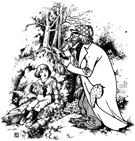 Da trat mit leisen Schritten aus den Büschen das alte Männlein mit dem langschleppenden Rock und der großen Brille. Das blieb lächelnd vor Max stehen, griff nach der Riesendose in den tiefen Rocktaschen, nahm behäbig eine Prise, nieste und sprach: