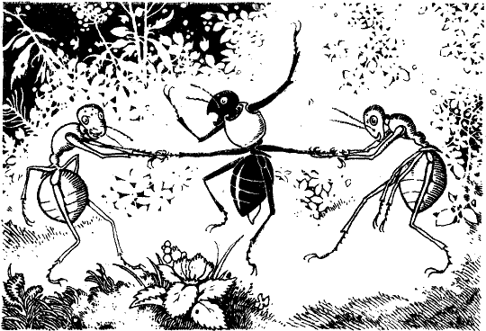 »Das sind einmal gescheite Insekten! Alle Anerkennung!« rief Max, »die stehen ja sogar uns Ameisen nicht nach. Das will was heißen. Denn man darf nicht vergessen, daß unter uns sehr geschickte Holzarbeiter sind, die kunstvolle Wohnungen in die Baumstämme graben, teurer Großzang!«