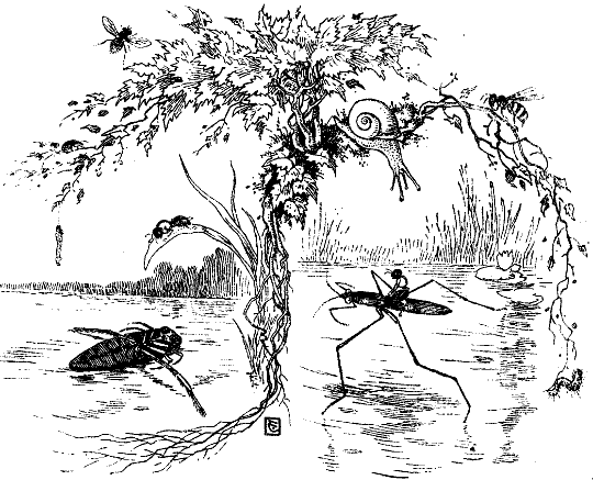 »Ach, Mutterchen, ich war doch selber im Ameisenland, und bei den Hummeln habe ich übernachtet. Denkt euch, einmal bin ich auf einem Wasserläufer über den großen See geritten und beinahe hätte mich der Ameisenlöwe gefressen!«