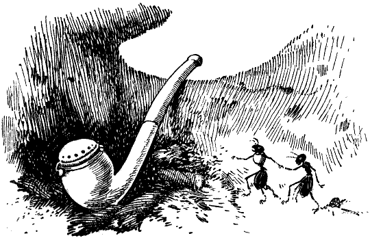 Nach allen Wechselfällen des Schicksals führte unser entthronter Kaiser jetzt ein ruhiges Dasein in der Verbannung. Er war zufrieden mit seiner einfachen Wohnung und lebte in Eintracht mit seinem Adjutanten. Die einzig drückende Sorge blieb nur die Beschaffung der Lebensmittel; doch auch hier fand sich eine Lösung. An den Wurzeln der Eiche stand ein Rosenstock. Auf seinen grünen Zweigen lebte eine zahlreiche Herde von Blattläusen, die sich willig melken ließen. Nun bestand für die beiden Ameisen keine Gefahr mehr, dem Hungertode zu verfallen.