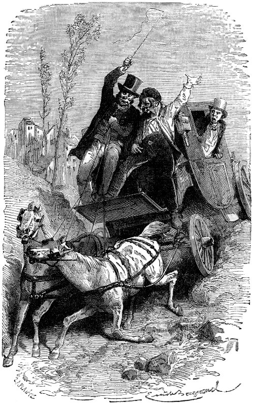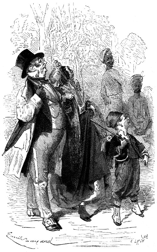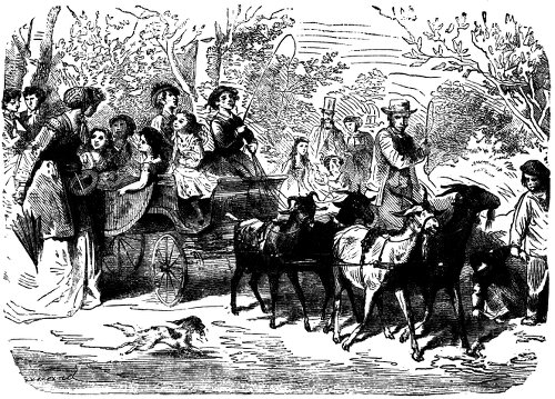 We were soon seated in the open wagonette, and off we started. Though I should not say seated, for the children scarcely sat down at all: they kept jumping up, changing places, pushing each other, and playing all sorts of pranks. I was in an agony of fear lest they should tumble out; and during the whole drive, I sat with my arms extended, clutching hold, sometimes of one, sometimes of the other, to save them. This was fright number one.
