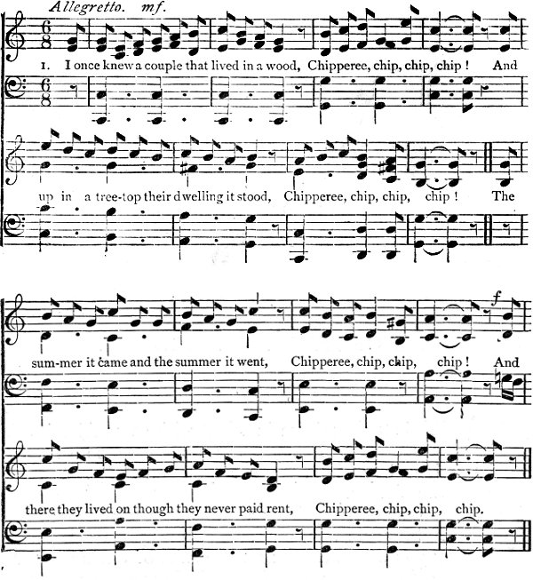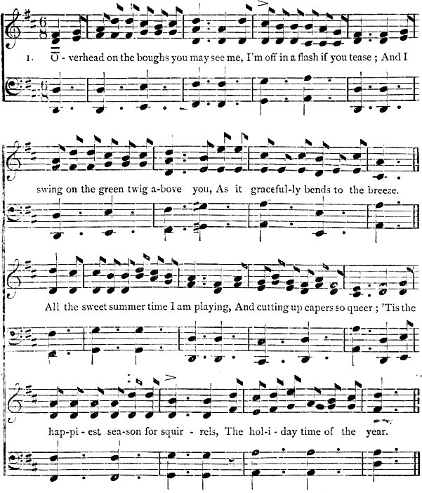 The mistress of these two pets used to let the canary fly about sometimes in her bedroom, but she never had quite confidence enough in Bijou to do this while he was there. One day in summer the window of the bedroom happened to be open at the top without her noticing it, and the canary, after flying about the room a little while, passed out of the window. It flew round and about, from tree to tree, seeming to enjoy its liberty very much.