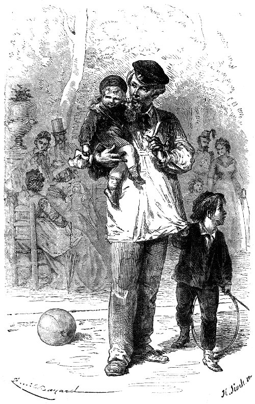 Those of my young readers who are accustomed to be dressed up as soldiers—Turcos or Zouaves; or, if they are girls, to be clothed in silk and velvet, would no doubt like to know how my little friend was dressed. Well then, his mamma did not let him wear such fine clothes as would interfere with his exercise or his games. Perhaps some of my elegantly dressed little readers would not care to play with him when they hear that he wore neither velvet nor fur, nor even a feather in his cap; but had simply a jacket and trowsers, made of linen in summer, and of warm cloth in winter. For all that, however, he was a good little boy, and well brought up.