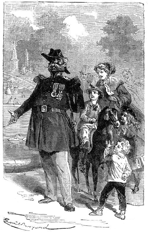 One summer evening, when Maurice and his parents were in the garden, enjoying the freshness of the air and the perfume of the flowers, they heard the bell ring at the gate, and presently Fritz came up to them, leading by the 13 bridle a pretty little black horse. In few words the old man explained the motive of his visit. He wished, before leaving the world, to make Maurice a present of the wooden horse which he had brought with him.