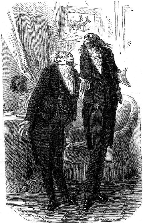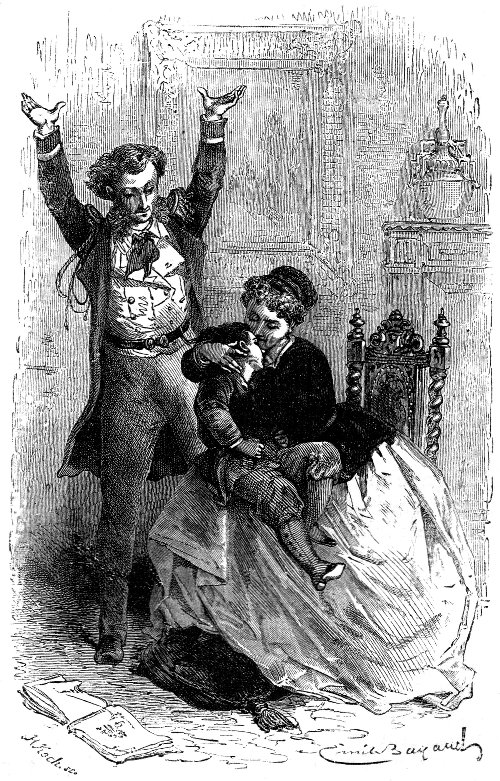 Let us go in: I wish to make you acquainted with a little companion, whom I hope you will love very much. There he is with his mamma in the drawing-room, where the window, opening to the ground, shows us a garden beyond. At this moment he is repeating a fable to his mother. It is one which teaches that pride is a great fault; that we ought not to assume airs of superiority towards the unhappy and humble, nor endeavour to excite envy in their hearts; and that Providence, moreover, 8 takes upon itself sometimes to punish those who do so. This fable, as you have already guessed perhaps, is called—“The Oak and the Reed.”