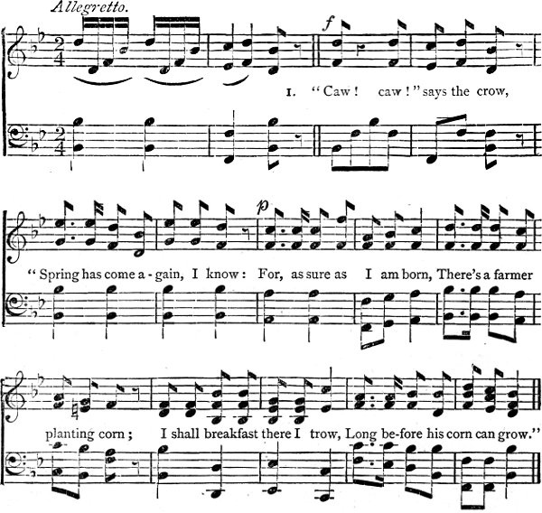 Peter was a little boy who was very fond of birds and animals. He had a raven which he taught to do all manner of tricks. Trusty Tim—that was the raven’s name—would fetch and carry like a dog, and would call upstairs to his master when anyone came to the cottage door, like a housedog barking. He would also help his master to pull off his boots, by taking the toe in his beak and giving it a tug.