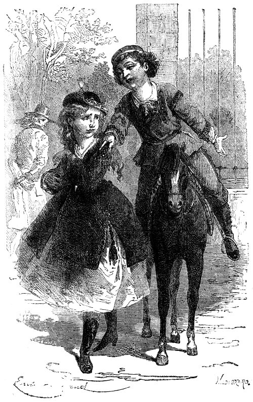 Directly he had repeated the last verse of the fable—which he did without thinking at all of its meaning—Maurice bounded off from the drawing-room into the garden. In a moment he had unfastened the horse, and placing his foot in the stirrup, had sprung on its back. 10 Then he called out: “Gee-up, Cressida! gee-up, my friend!”