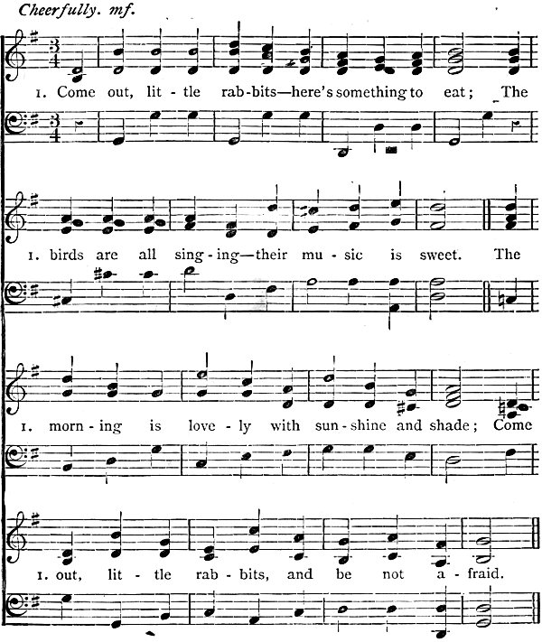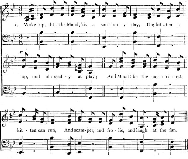 A lady that I know had a fine tabby cat, and also a very beautiful canary. The cat’s name was Bijou; the canary’s—Cherry. Now Bijou had been brought up from kittenhood with Cherry: that is, he had been accustomed to sit on the rug beside the fire, while Cherry sang in his cage on the table, or hanging at the window. Bijou always behaved perfectly well, and never attempted to molest Cherry.