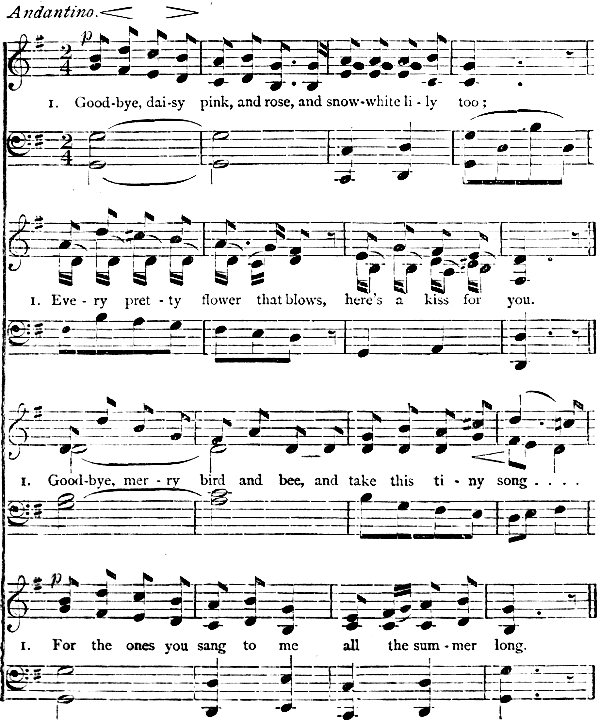 Cissy and Lily are feeding a little tame sparrow. The poor bird had fallen out of its nest, and the gardener picked it up, and gave it to the children. The little creature sits on Cissy’s finger, while Lily feeds it with bread and milk. It is getting quite tame, puts its little head on one side, and looks at Lily out of its pretty bright eye. The children 361 have had it some days: it can fly a little now, but shows no wish at present to fly away.