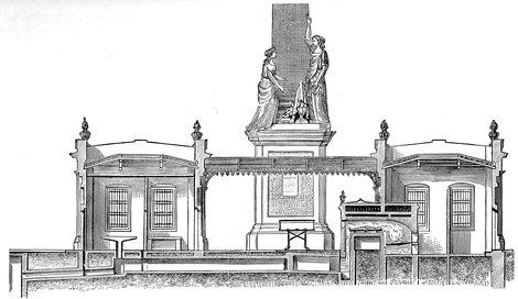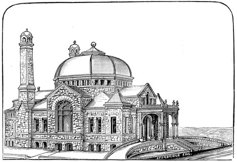 In the rear of the building it is proposed to build an addition, in the form of a three-quarter circle, which will be styled the columbarium. On the inside this will be divided by three corridors, and the walls divided into compartments for containing urns. There will be room in this limited space of 40 × 30 feet, it is estimated, for holding the remains of 8000 bodies.