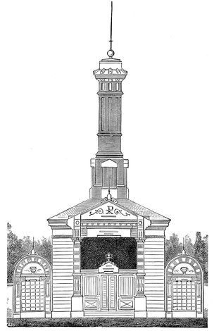 The plan of the basement shows the same divisions as are made on the main floor. On the left-hand side is a retiring-room. The front is divided into four rooms. An ice cellar, a frigidarium, which is calculated as a place in which to preserve bodies for several days; a calidarium, a heated room in which bodies can be placed for several days, to insure against cremation while in a state of trance; and a drug room, where restoratives will be kept. The right-hand wing is designed for a preparing room, from which the body is taken directly to one of the furnaces. The furnaces, of which there will be two, are not yet definitely designed. It is supposed, however, that they will be after the plan of the apparatuses at Lancaster, in Pennsylvania.