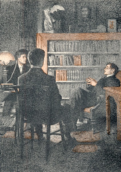 “All right,” he answered quietly. “I’ll see what I can do.” He went to the window and stood there a moment looking out over the sunlit landscape and peeling off a pair of very proper tan gloves. Harry and Bert exchanged glances. Presently he turned and, tossing his gloves aside, sat down on the window seat, took one knee into his hands, and looked about the room with frank interest.