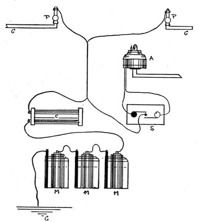 Some electrical considerations: I.—Introductory. II.—Construction. III.—Lines, Indoor Lines. IV.—Signalling Apparatus. V.—Batteries. Open Circuit Batteries. Closed Circuit Batteries. VI.—Practical Operations. Circuit with Magneto Bells and Lightning Arresters. How to Test the Line. Push-Button Magneto Circuit. Two Stations with Battery Bells. VII.—Battery Telephone. Battery Telephone Circuit. Three Instruments on one Line. VIII.—General remarks. Index.