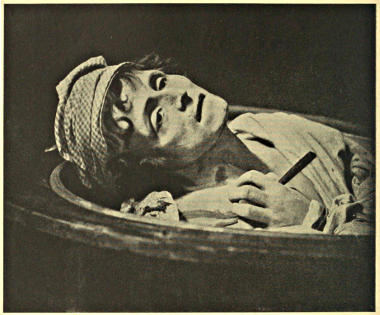 This model is posed in the actual cell from the Newgate prison, from which he made his sensational escape.