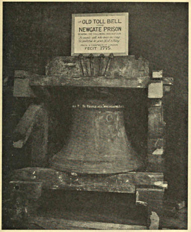 Visitors of all grades of society linger long before these narrow cells, and I have often seen them rap with their knuckles the Newgate bell, which never fails to respond with a soft mellow resonance, reminding one of the time-honoured couplet, deeply inscribed upon it:
