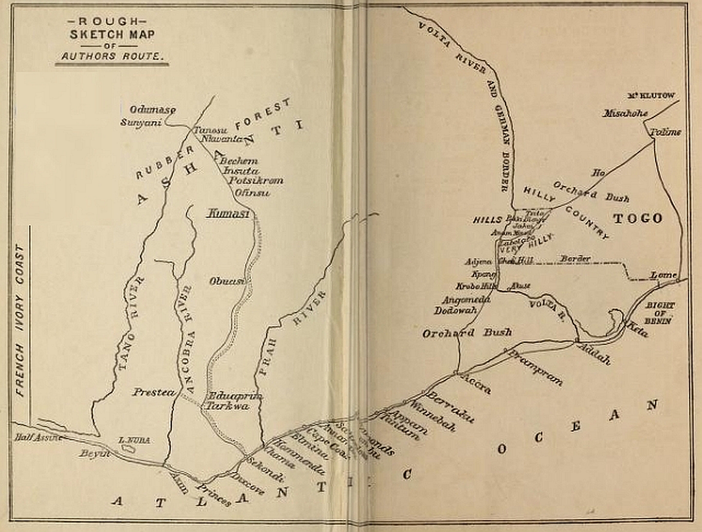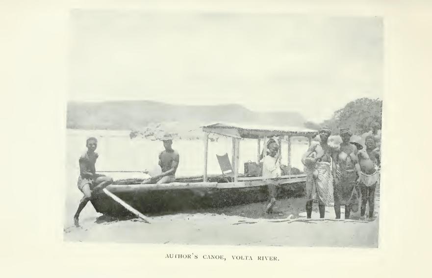 To those who have helped me I dedicate this record of my travels in West Africa. Without their help I could have done nothing; it was always most graciously and kindly given and I know not how to show my appreciation of it. “Evermore thanks, the exchequer of the poor,” is all I can give in return, unless some of them will take this book in very inadequate payment. Sir Charles Lucas, the head of the Colonial Office, gave me letters of introduction, Elder Dempster and Co. gave me a free passage, their captains and their officers put themselves out to help me, Sir George Denton welcomed me to West Africa, and after these comes a long string of people who each and all contributed so much to my welfare that I feel myself ungracious not to mention them all by name. I must thank Messrs Swanzy and Co., who helped me up the Volta and across the unknown country on the German border, and I were churl indeed if I did not remember those men and women of another nation, who received me out of the unknown, fed me, welcomed me, and smoothed my way for me. To each and all then, with this dedication, I offer my most grateful thanks.