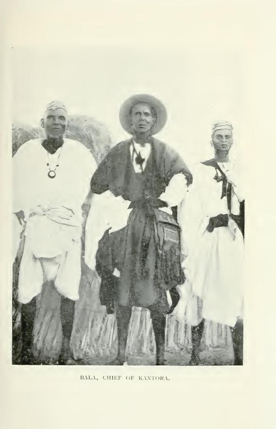 It is always cool in the early morning, and very pleasant here among the trees, so the medical officer and I walked on chatting about Bechem, when we came upon another little party of travellers, who stopped us and asked help. It was a Hausa with a couple of women, his wives in all probability, and a couple of other men, presumably his slaves. He was a tall, strong man in the prime of life, upon whose shaven head were deep lines graven by the loads he had carried. Our headman, who could speak Hausa, interpreted.
