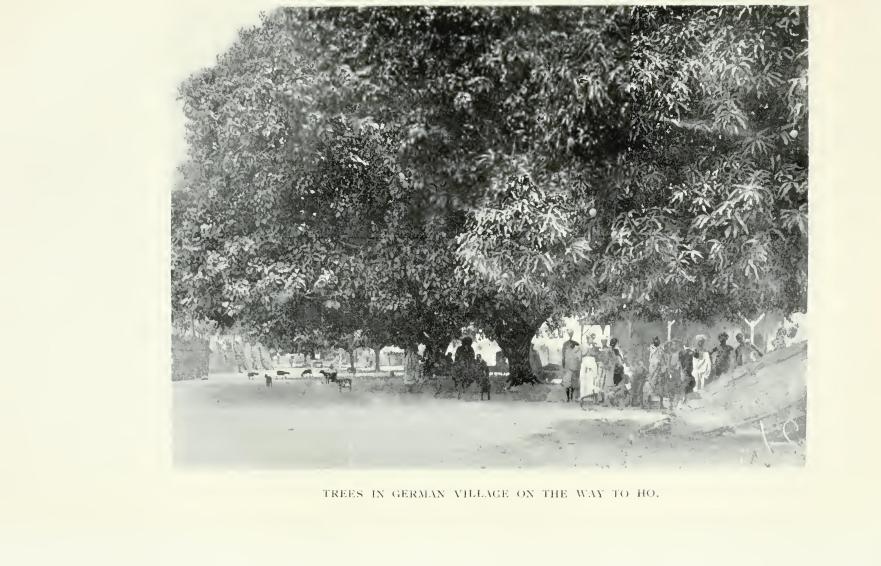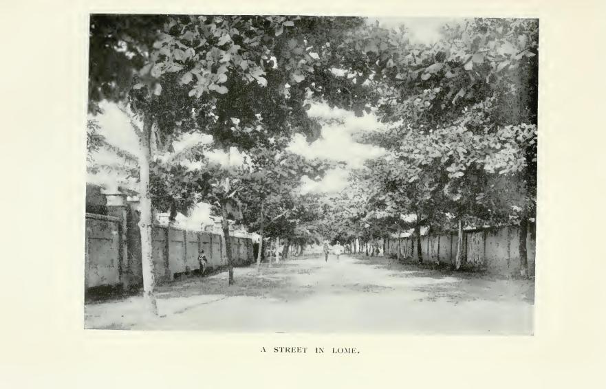 Then at the other end of the social scale are the Basel Missions. They combine business and religion very satisfactorily in a thoroughly efficient German spirit, and while the missionaries attend to the souls of the heathen and set up schools to teach them not only to read and write, but various useful trades as well, the Basel Mission Factories do a tremendous trade in all the necessaries of life. These Basel missionaries are most kindly, worthy people, and to their kindness I owe much. Occasionally I have come across a man of wide reading and with clever, observant eyes, but as a rule they are chosen from the lower middle classes among the Swiss and Germans; very often the missionary spirit runs in the families, and it passes on from father to son, from mother to daughter. These people, too, come out if not for life, like the Roman Catholics, at least for long periods of years. It is generally believed on the Coast, and I have never heard it contradicted, that when a man attains a certain standing he is allowed to marry, even though he is not due for a holiday in Europe. They have at headquarters photographs of all the eligible maidens in training for the mission field, and the candidate for matrimony may choose his wife, and she is duly forwarded to him, for the heads of the Basel Missions, like me, believe in matrimony for Africa. And most excellent wives do these Basel missionary women make. They bear their children here in West Africa where no English woman thinks she can stay more than six months, and their homes are truly homes in the best sense of the word. If example is good for the heathen, then he has it in the Basel Missions. Another thing, they must make the most excellent nucleus for German interests, for no one who has been in a Basel Mission Station or Factory can but respect these men and women and little children who make a home and a garden in the wilderness. And what I have said about the Basel Missions applies to the Bremen Missions, except that these are more pronouncedly German. But better women may I never hope to meet in this wide world than those in the Bremen Missions. And in between these two extremes are missionaries of every class and description. Against the individuals I have nothing to say, save and except this—I want to discount the admiration given to the “poor missionary.” They are good men I doubt not, but they are earning a living just as I who write am earning a living, or you who read, and to my mind they are earning a living in the halo of sanctity very much more comfortably than the struggling doctor or the poor curate in an East-End parish. Whatever their troubles, they have never the bitterness of seeing the ghastly want that they cannot relieve, and if they do not live in England, they have always the joy of making a home in a new country, and that is a joy that those who talk so glibly about exile do not seem to realise.