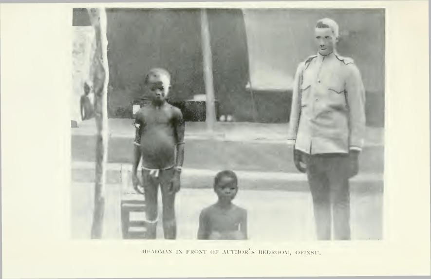 It was rather startling in this twentieth century to be brought face to face with the actors in such a tragedy, especially when we were powerless to help. We were unarmed and had with us only carriers and servants; it was the prestige of the white man that was carrying us through. The Hausa was going away from Nkwanta as fast as he possibly could, and apparently he did not want to trust himself within its bounds, even under the protection of a white man. He declined to come back with us, and what could we do? The medical officer, I think, did all that he could when he promised to report things to the Commissioner at Sunyani, and recommended the Hausa, since he would not avail himself of our protection, to get the Chiefs clerk at Bechem to write his account of the affair to Sunyani and Kumasi.