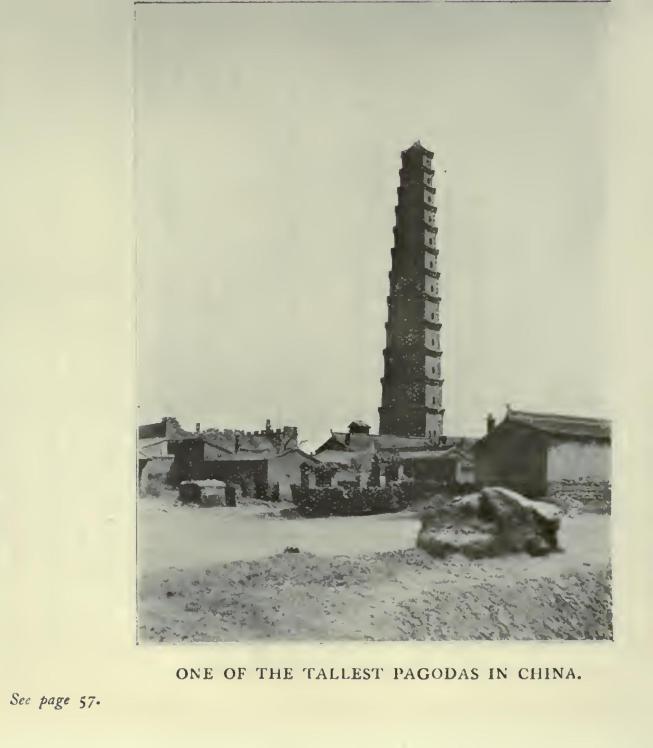 We climbed up and up through the mountains into the loess country, and at last we were on the plateau, about four thousand feet above the sea-level, whereon is T'ai Yuan Fu, the capital of the province. There are other towns here too, little walled eities, and the train drew up at the stations outside the grey brick walls, the most ancient and the most modern, Babylon and Crewe meeting. Oh, I understand the need of those walled eities now I have heard so much about Pai Lang. There is a certain degree of safety behind those grey walls, so long as the robber bands are small and the great iron-bound gates ean keep them out, but dire is the fate of the city into which the enemy has penetrated, has fastened the gates and holds the people in a trap behind their own walls.