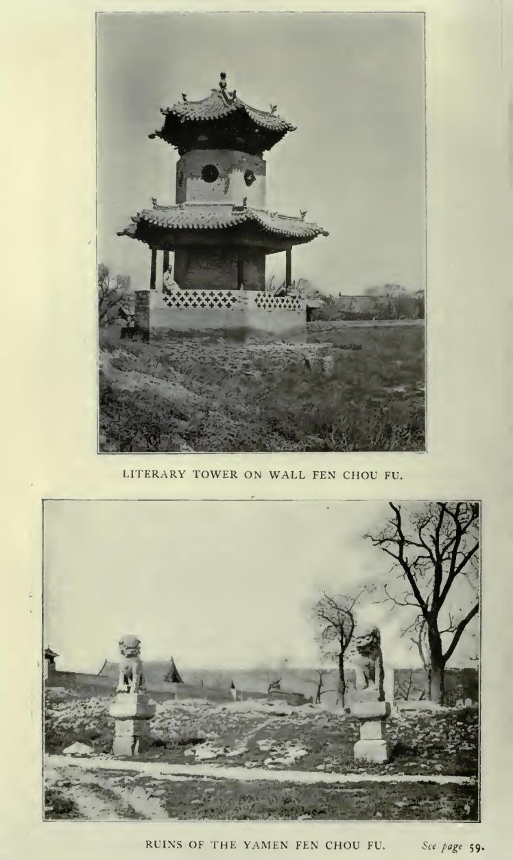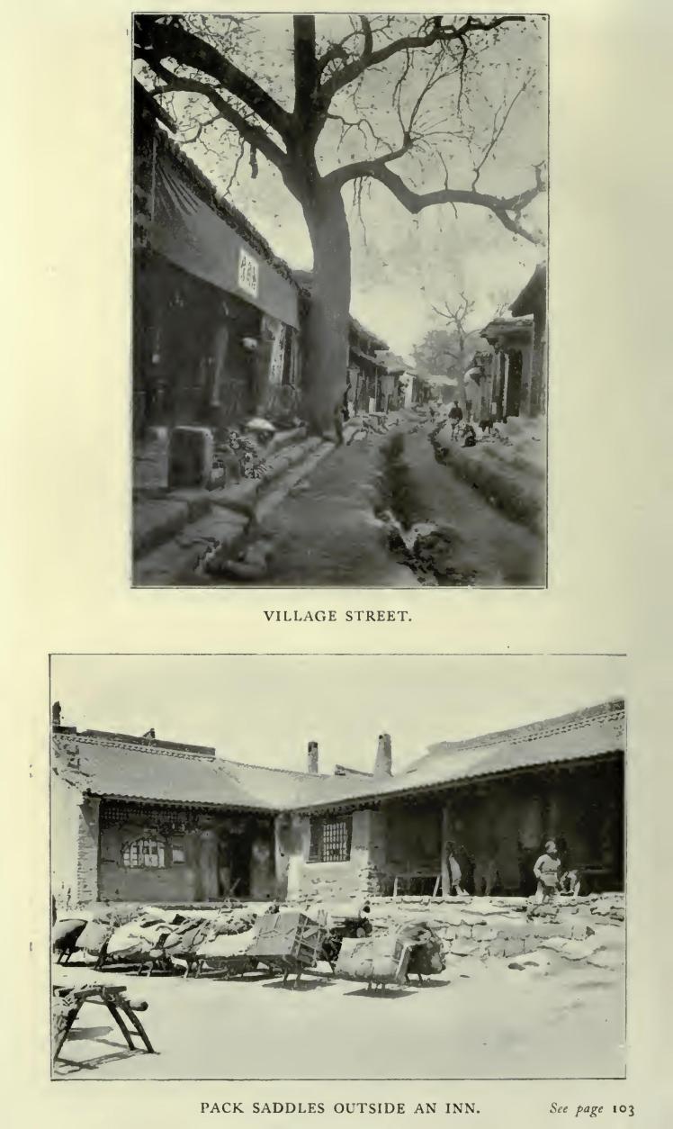 Now the road from Honan Fu to Hsi An Fu is always dangerous. It is through the loess, sunken many feet below the level of the surrounding country, and at the best of times is infested with stray robbers who, from the cliffs above, roll down missiles on the carts beneath, kill the mules and hold the travellers at their mercy. The carters go in large bodies and are always careful to find themselves safe in the inn-yards before the dusk has fallen.