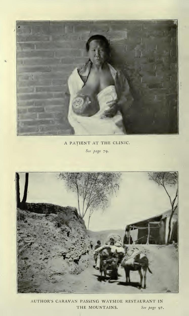 The missionaries were goodness itself to me. Dr Mackay, in charge of the Women's Hospital, set me up with all sorts of simple drugs that I might require and that I could manage, and one day in the springtime, when the buds on the trees in the compound were just about to burst, and full of the promise of the life that was coming, I, with most of the missionaries to wish me “Godspeed,” and with James Buchanan under my arm, my giggling interpreter and my master of transport following with my gear, took train to T'ai Yuan Fu, a walled city that is set in the heart of a fertile plateau surrounded by mountains.