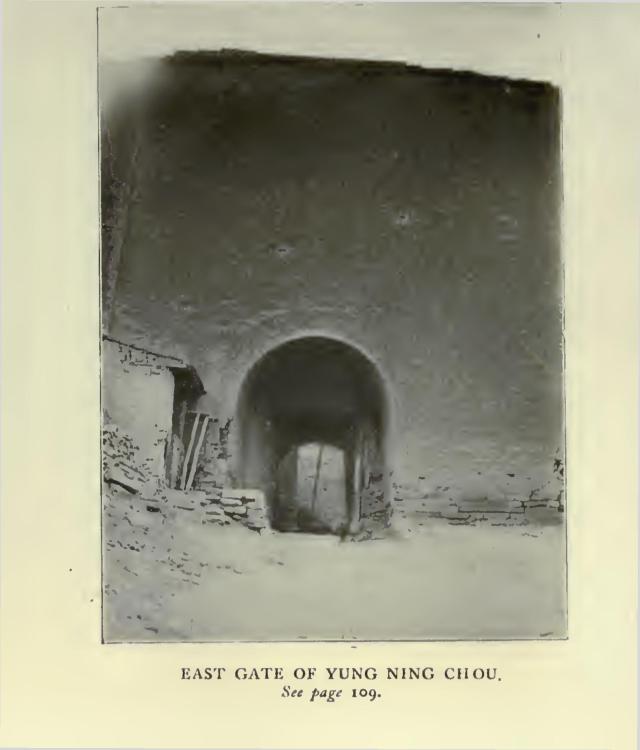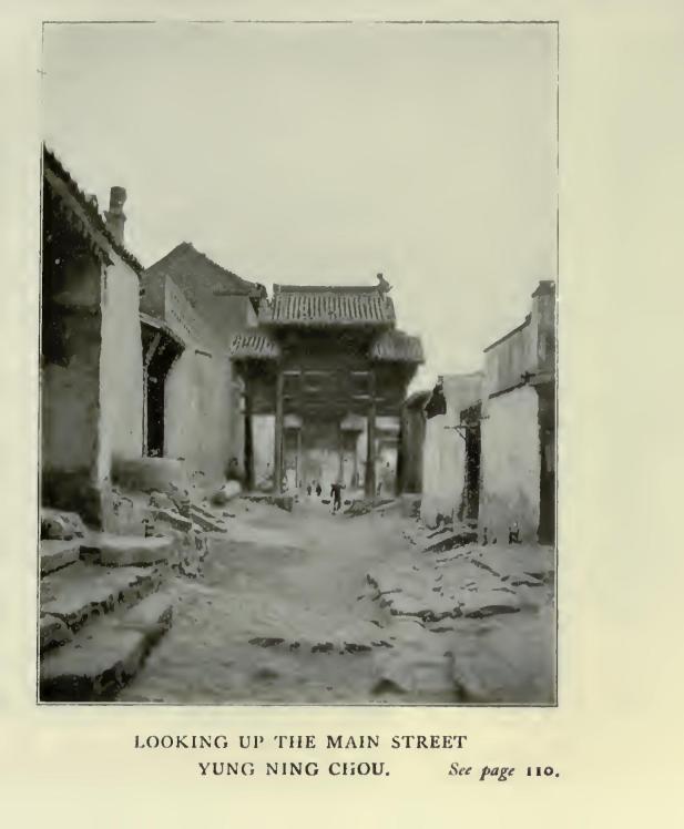Still the soldiers held Tungkwan, the gate into Shensi, the mountains on either side blocked the way, and Hsi An Fu breathed for a moment till it was discovered that Pai Lang in strategy was equal to anyone who had been sent against him. He had taken the old and difficult route through the mountains and had come out west of the narrow pass of Tungkwan and, when I became interested in him, was within a day's march of Hsi An Fu, the town that is the capital of the province of Shensi and was the capital of China many hundreds of years ago. It is a walled city, but the people feared and so did the members of the English Baptist Mission sheltering behind those walls. And, naturally, they feared, for the Society of the Elder Brethren had joined Pai Lang, and the Society of Elder Brethren always has been and is markedly anti-foreign. This was the situation, growing daily a little worse, and we foreigners looked on; and the Government organs in Peking told one day how a certain Tao Tai had been punished and degraded because he had been slack in putting down White Wolf and possibly the next day declared the power of White Wolf was broken and he was in full retreat. I don't know how many times I read the power of White Wolf had been broken and yet in the end I was regretfully obliged to acknowledge that he was stronger than ever. Certainly Pai Lang turned my face north sooner than I intended, for the idea of being a target for rocks and stones and billets of wood at the bottom of a deep ditch from which there could be no escape did not commend itself to me. True, in loess country, as I afterwards found, there are no stones, no rocks and no wood. I can't speak for the road through Tungkwan, for I didn't dare it. But, even if there were no stones, loose earth—and there is an unlimited quantity of that commodity in Northern China—flung down from a height would be exceedingly unpleasant.