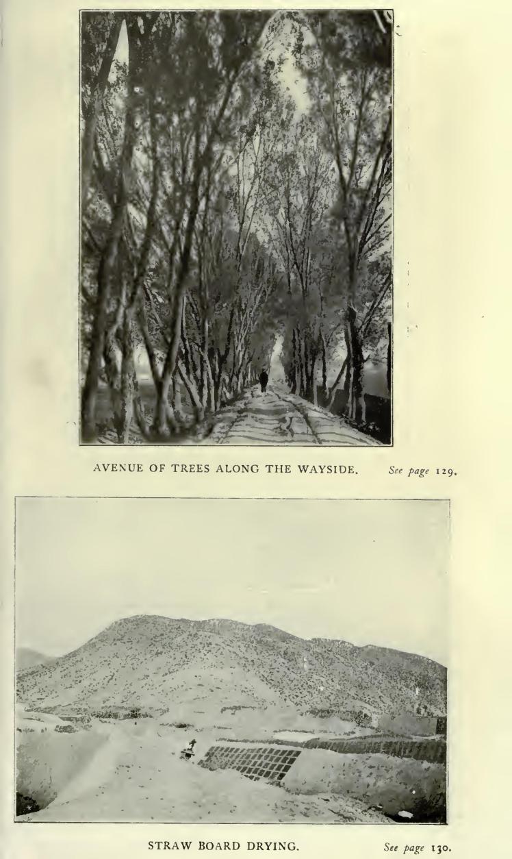 Through mountain sidings and tunnels we came at length to the curious loess country, where the friable land is cut into huge terraces that make the high hills look like pyramids carved in great clay-coloured steps, and now in April the green crops were already springing; another month and they would be banks of waving green. The people are poor, their faces were browned by the sun and the wind, their garments were scanty and ragged, and the original blue was faded till the men and the clothes were all the same monotonous clay colour of the surrounding country. The women I saw here were few, and only afterwards I found the reason. The miserably poor peasant of Shansi binds the feet of his women so effectually that to the majority movement is a physical impossibility.