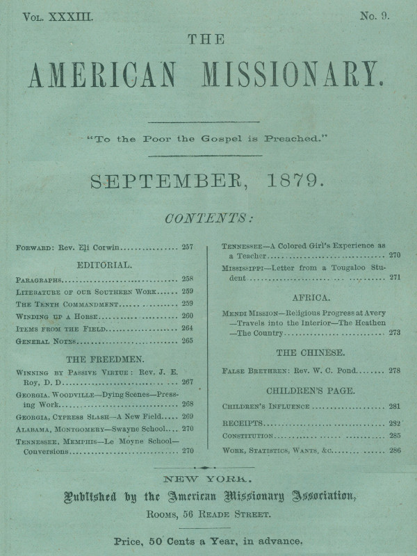 Title: The American Missionary — Volume 33, No. 09, September, 1879