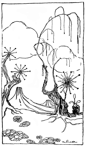 ... Solo, en el jardín de una casa amiga, he visto una tarde, en tibio crepúsculo, algo semejante a una estagnación de las horas. Había calor húmedo y voluptuoso, y el cielo, en que brillaban tan solamente, diamantinos, dos o tres luceros, se me representaba como inmenso invernáculo. No se sentía ni un soplo de aire; la vegetación hubiérase dicho cristalizada en la absoluta inmovilidad de las hojas. Había allí azucenas blancas de anunciación y otras semejantes a estilizados lirios heráldicos; había rosas de olor y jazmines orientales que constelan las verdes y espesas enredaderas en que crecen; había una flor que se llama cundiamor, y otra que estalla para regar su simiente, y la que se nombra bellísima, que evocaba para mí, rosada y alegre, altares domésticos como los que se adornan en Diciembre para celebrar la Concepción de María. Toda la circunstante naturaleza me parecía contenida en un concentrado bloque de tiempo, atmósfera de bella-durmiente-del-bosque, o del legendario monje extasiado que escucha al pájaro paradisíaco.