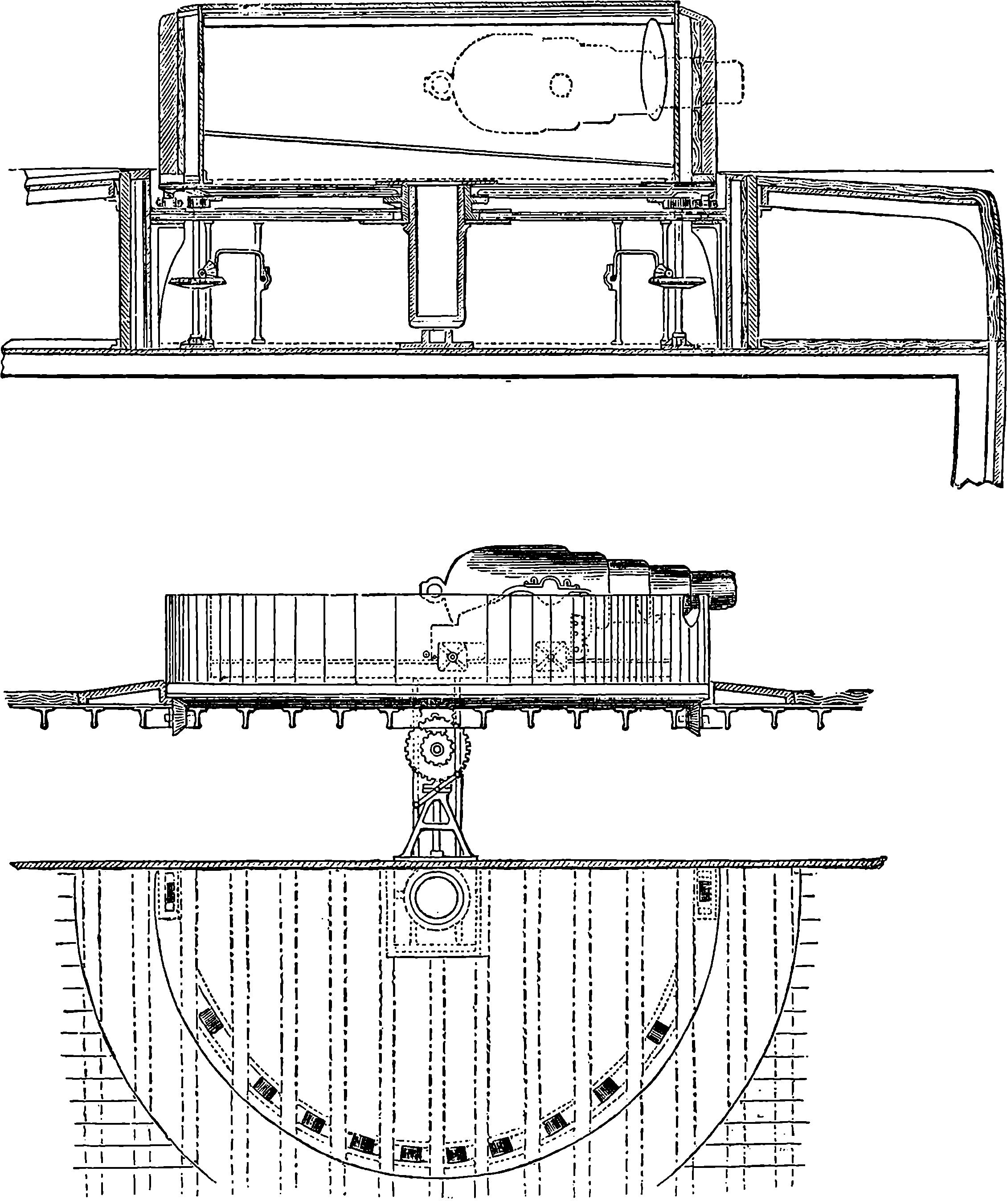 Dr. Joule arranged paddles of brass or iron, so that they could turn freely in a circular box containing water or quicksilver. From the sides of the box partitions projected inwards, which contained openings that permitted the divided arms of the paddle to pass, and preventing the liquid from 805moving en masse, thus caused a churning action when the paddle was turned. Now, every one who has worked a rotatory churn knows that a considerable resistance is offered to this action; but every one does not know that under these circumstances the liquid becomes warmer. It was Dr. Joule’s object to discover how much the temperature of his liquid was raised by a measured quantity of work. He used very delicate thermometers, and had to take a number of precautions which need not here be described; and he obtained the definite quantity of work by the descent of a known weight through a known distance, a cord attached to the weight being wound on a drum, which communicated motion to the paddle. The experiments were conducted with varying circumstances, to avoid chances of error, and were repeated very many times until uniform and consistent indications were always obtained. The result of the experiments showed that 772 units of work (foot-pounds) furnished heat which would raise the temperature of 1 lb. of water from 32° to 33° F., which is the unit of heat. This number, 772, is a constant of the greatest importance in scientific and practical calculations, and is called “the mechanical equivalent of heat.” The amount of work it represents is sometimes called a “Joule,” and is always represented in algebraical formulæ by “J.” Mr. Joule’s first paper appeared in 1843, and soon afterwards various branches of the subject of “The Equivalence and Persistence of Forces” were taken up by a number of able men, who have advanced its principles along various lines of inquiry. Among the most noted contributors to this question we find the names of Sir William Thomson, Helmholtz, James Thomson, Rankin, Clausius, Tait, Andrews, and Maxwell.